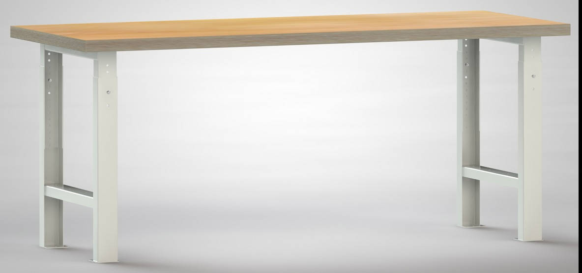 1 Stück Profi-Werkbank WP510VG2000M45SX7000, 2000 x 700 x845 mm LxTxH , höhenverstellbar 745 - 1045 mm mit Buchenmultiplexplatte 2000 x 800 x 45 mm,zerlegte Ausführung zur Selbstmontage , Standardfarbe: RAL 7035 lichtgrau ( andere Farben auf Anfrage lieferbar)
